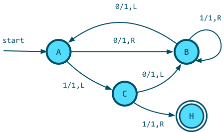 The Turing Machine is a model of mathematical computation which defines a machine. It basically simulates the construction of a computers algorithm using the logic of the algorithm source.